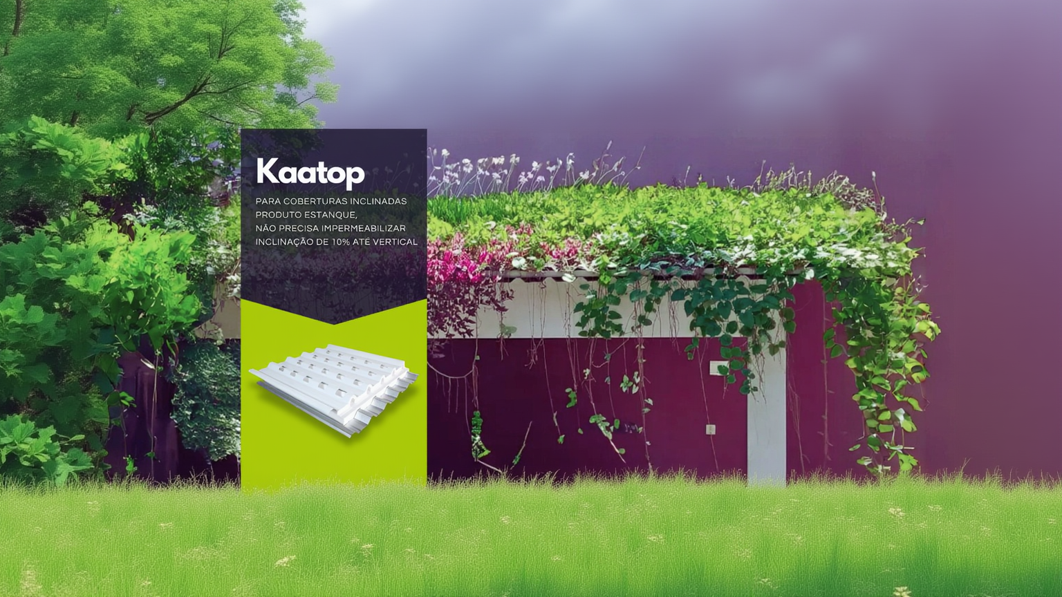 Kaatop é uma telha cultivável inteligente que pode receber até 20 mudas ornamentais ou agrícolas para cada metro quadrado. Com sementes ou mudas pré-enraizadas em torrão, hidroponia ou biofertirrigação, as possibilidades de cultivo são infinitas.